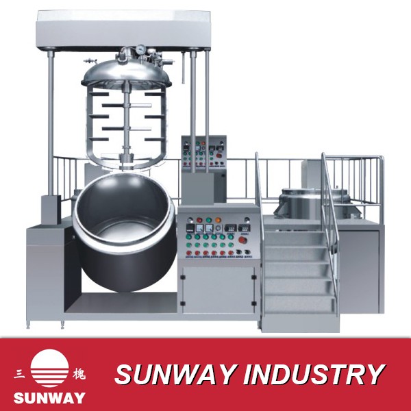 2016年,朝鮮工廠購買我司兩條全自動制管整線和1000L制膏機等設備 真空制膏機系列廣泛用于牙膏、食品、化工等行業粘稠音體的制造,即粘稠度較高的物質。全套設備配有制膏機、預混鍋、膠水鍋、粉料斗、膠體泵、操作平臺。